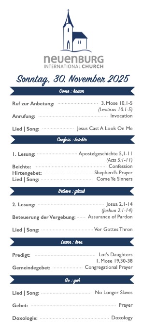 Feiert diese Woche gemeinsam mit uns Gottesdienst. Um 10:00 Uhr bieten wir einen Gottesdienst für alle Interessierten an. Der Gottesdienst wird sowohl in deutscher als auch in englischer Sprache abgehalten. Wir hoffen, euch dort zu sehen!